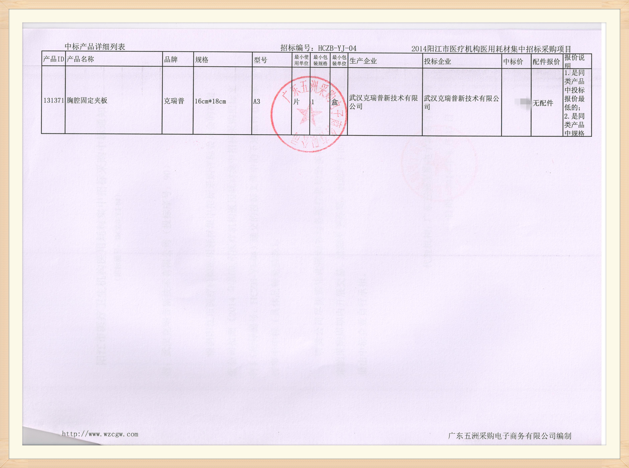 【廣東省2014陽(yáng)江市醫(yī)療機(jī)構(gòu)醫(yī)用耗材集中招標(biāo)采購(gòu)項(xiàng)目】東科圣康品牌胸腔固定夾板在2014年陽(yáng)江市醫(yī)用耗材招標(biāo)采購(gòu)項(xiàng)目中我們這款產(chǎn)品已成功中標(biāo),東科圣康胸腔固定夾板是一款由高分子納米材料、記憶鋁合金板、多頭肋骨固定帶組成,具有結(jié)構(gòu)好,重量輕體驗(yàn)度好,無(wú)需加熱,操作簡(jiǎn)單方便等特點(diǎn)??捎糜诠强?、胸外科、急診科等科室的胸背部閉合性、開(kāi)放性肋骨骨折的固定復(fù)位等,可良好的運(yùn)用以及使用。