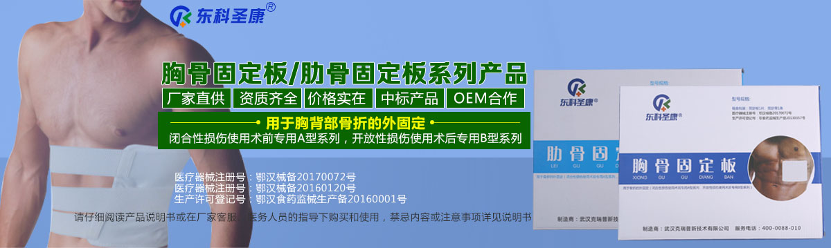 東科圣康牌胸骨固定板、肋骨固定板系列產(chǎn)品(又稱:胸部護板),密封包裝,輻照滅菌(可進手術(shù)室),可進入社會醫(yī)療保險和新型農(nóng)村合作醫(yī)療收費,全套醫(yī)療器械耗材生產(chǎn)注冊資質(zhì)齊全,規(guī)格型號多,質(zhì)量合格穩(wěn)定,在全國30多個省市政府醫(yī)療機構(gòu)集中采購項目,和公立醫(yī)療機構(gòu)陽光采購項目中標,適用于胸外科、骨科、腫瘤科、急診科、理療科、整形科、120現(xiàn)場急救、ICU、康復(fù)科等科室。。